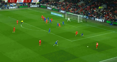 第9分钟,哈萨克斯坦后卫禁区被断球,詹姆斯抽射变线破门,威尔士1-0。